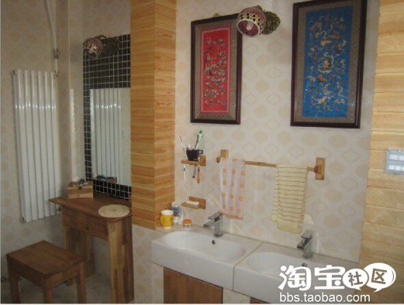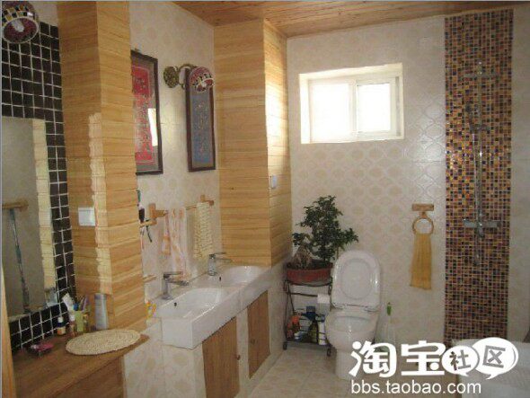 如果浴室是"地中海风格",那么整体色调不符合,颜色太多,看起来很乱