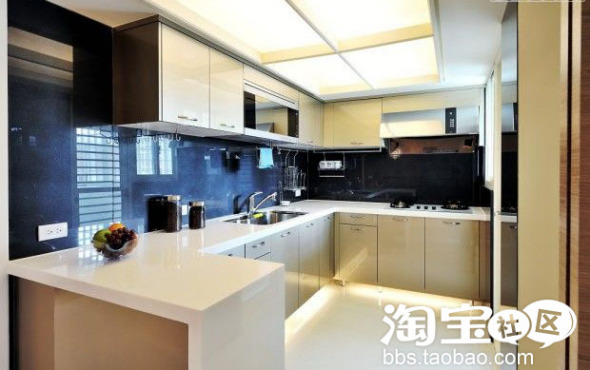 敞开式,理论上是将厨房与餐厅或客厅相连的一面非承重墙打掉,使厨房与餐厅合二为一。由于东方人的饮食习惯与西方人有较大区别,因此,设计师对敞开式厨房作了有中国特色的改造。如用一面玻璃砖墙加以分隔,既保证了油烟不外散,又可利用玻璃砖墙打造透光和折射光线的效果,使内外都感觉到明亮和通透。