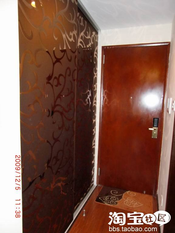 这进门旁的大衣柜,喜欢这衣柜推门的图案和色调.