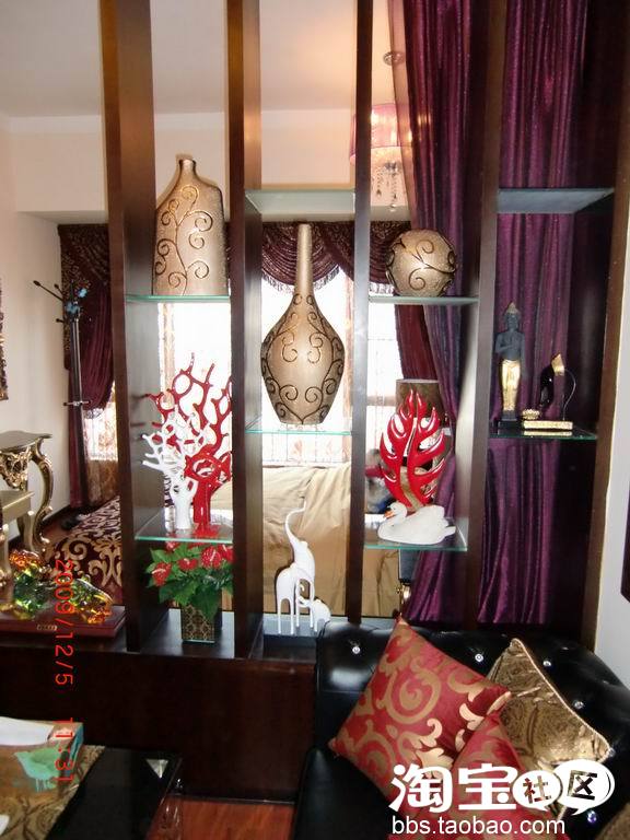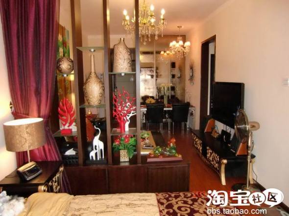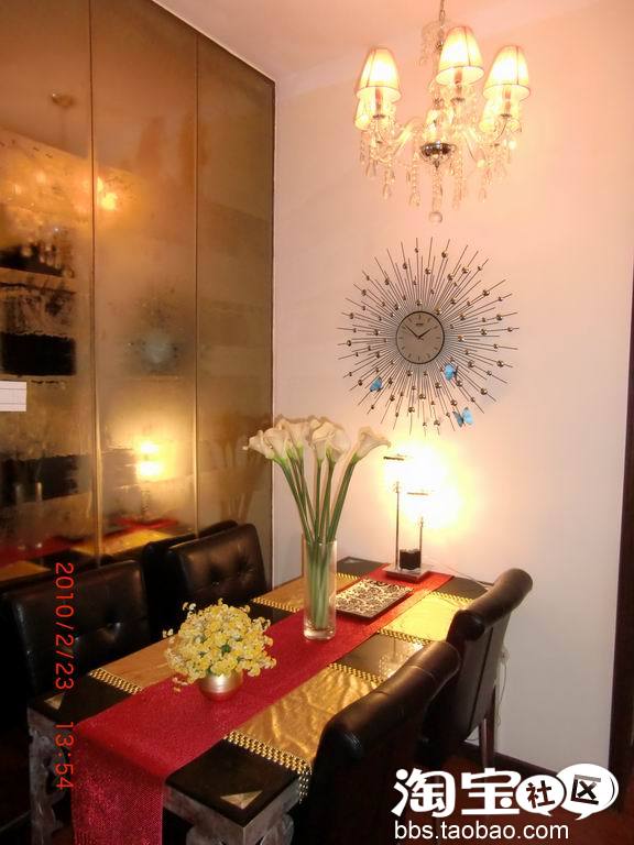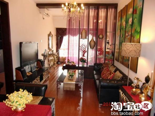 这三张就是后来自己添置了其它家具和家电的实景图.整个风格是欧式的混搭,既有欧式也带有些中式和泰式.色调以金色、黑色和红色为主。为了弄好房子的装修,在淘宝上花了不少时间买了不少东西也省了不少钱,从淘宝的普通级用户变成了钻石级用户了.在最后我还附上我买的每件东西的图片和网址,给大家参考下.