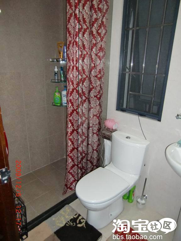 这是卫生间,马桶和淋浴花洒收楼时已经有的,自己去买个浴帘和地毯就好了