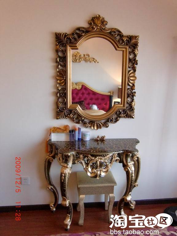 镜子和梳妆台的图案比较相配,是比较古典的欧式风格。