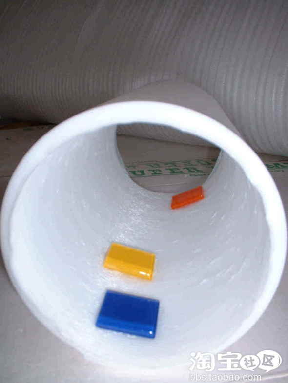 然后呢,就是粘贴了。马赛克太亮了,只有粘贴到内壁才不那么耀眼哦,而且这样才能显示出排气塑料管带有的磨砂玻璃效果。