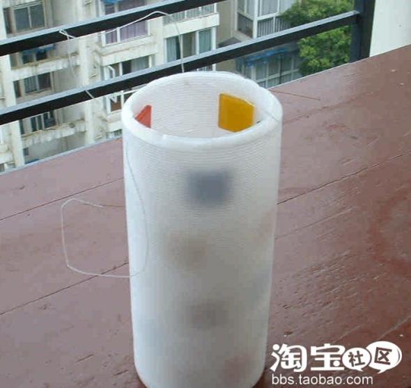 好了,完工后的罩子似乎不那么漂亮,但挂起来就不一样了,要注意把边缘剪干净,像玻璃一样光滑,悬挂绳子一定要结实漂亮,这张灯罩图是还没来得及美化时就拍的。