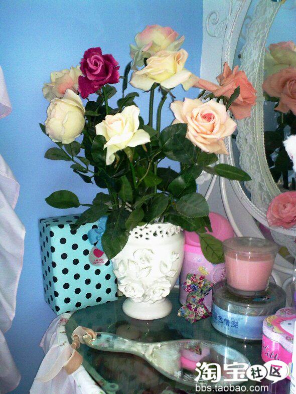 ,在本人的小屋中得到了集中的体现。记得以前碰见过一位很好的设计师,她给我看了很多爱琴海的照片(她在法国留学的同学去爱琴海做毕业设计,拍了许多美图给她分享)。蓝蓝的天、蓝蓝的海、白白的房子,过道小径两边都种满了艳丽的花朵。那花把那天空、海洋衬托得分外娇艳。于是她建议我在卧室里多点缀一些鲜艳的花朵,用艳丽的点缀撞击出蓝色的灵魂。(*^__^*) 嘻嘻……真的是正中我下怀,可惜后来因为总价报价过高而放弃了和她的合作。