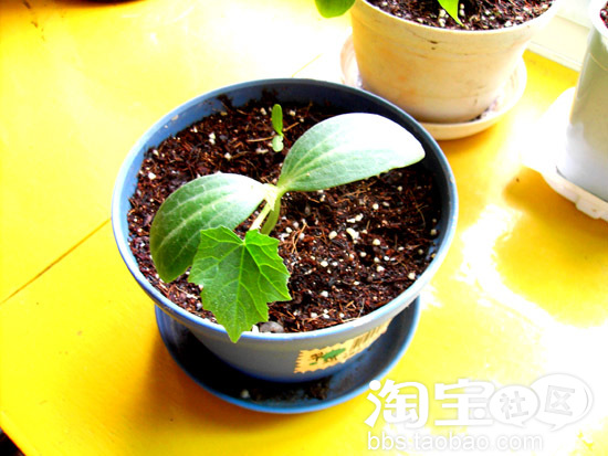 这个就是去年矮丝瓜留下的新种.发芽率100%,播了三粒就发芽了三粒!!