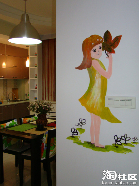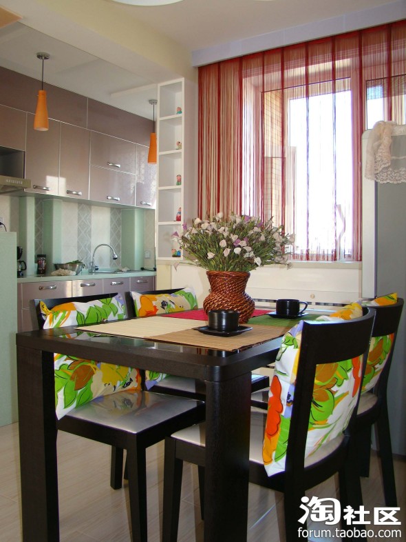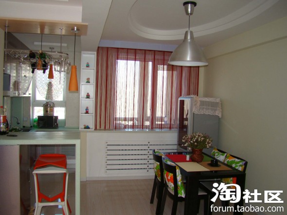餐桌购自家具城:实木材质-2000元/套,含椅子。当时买回来感觉颜色深了,装饰了一下,现在也看习惯了。嘻嘻~~