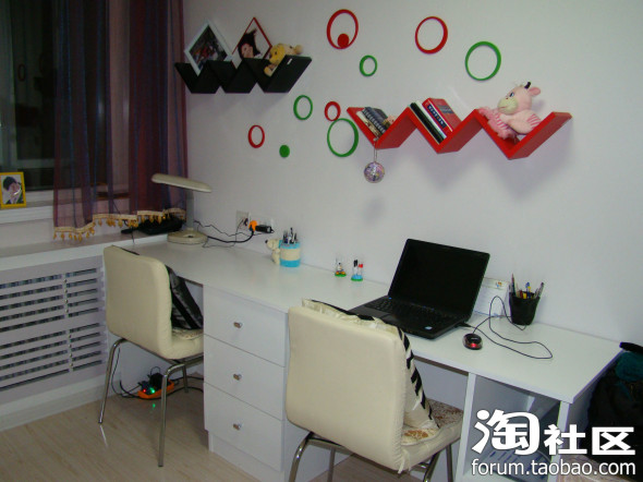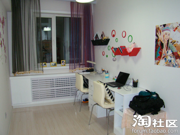 双人的写字桌是请木工师傅打的,暖气罩也是请了木工师傅重新做的。