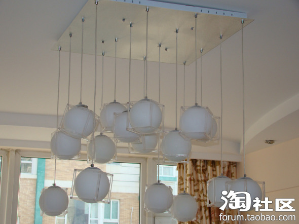 灯是在淘宝上购来的。很喜欢,很有现代的元素,最重要的是晚上照明很亮。也不是很费电,3W一个,可以分组点亮,带遥控。花掉750元