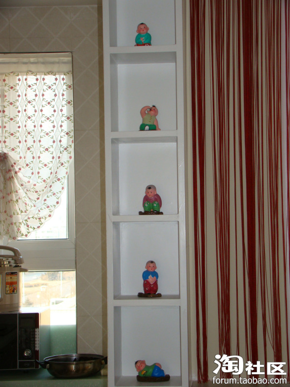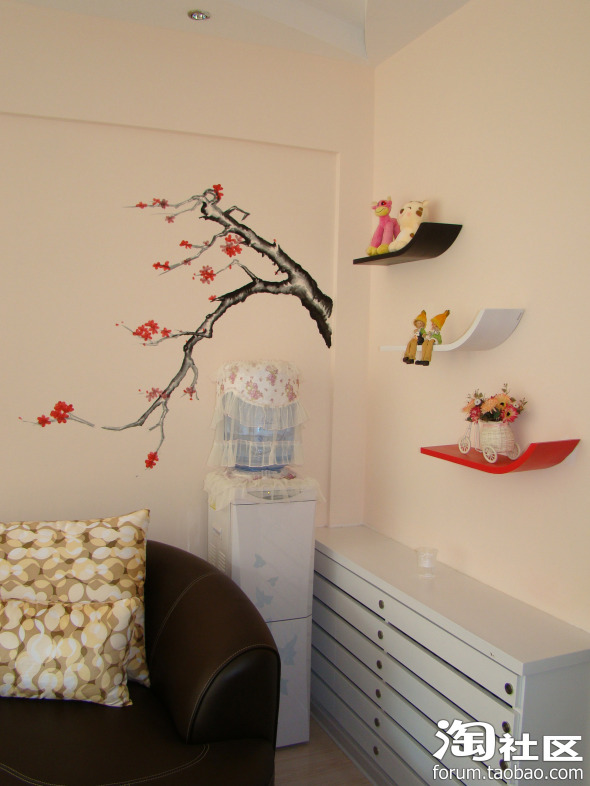 还想着在这面墙上再弄几个窄条的隔板,放一些小装饰在上面,但是还没有来的急弄。