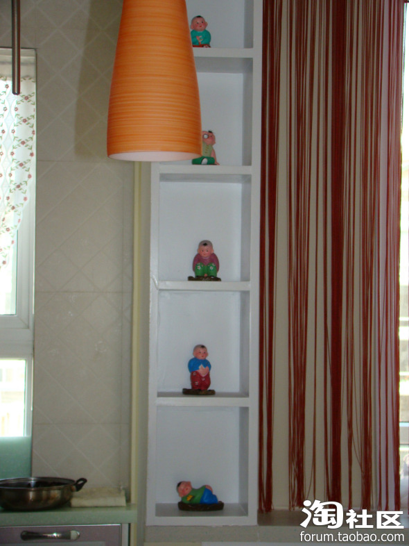 再来说说这个两色的窗帘,以前买的,搬来后改了个长短,还能用,两片的颜色不同,是偶故意选的。来家里做客的朋友对这个窗帘都持接受不了的态度,到目前为止还没有得到除了偶以外任何人的欣赏~~~
