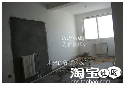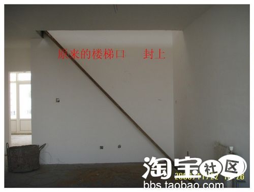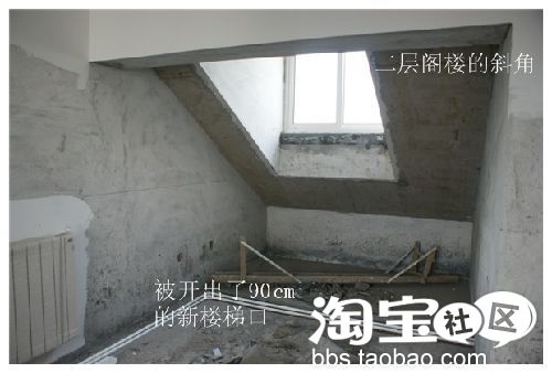 堵住旧的楼梯口,在北侧窗户的位置上重新开一个90cm的新楼梯口。