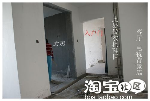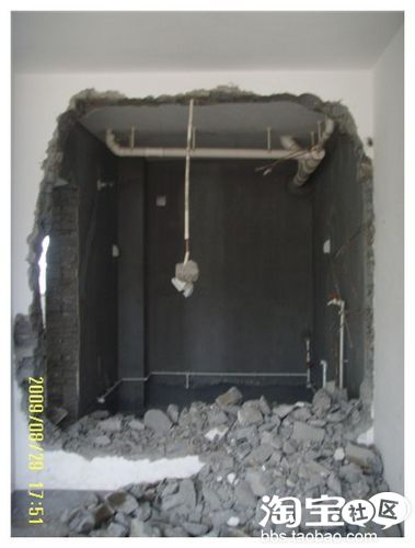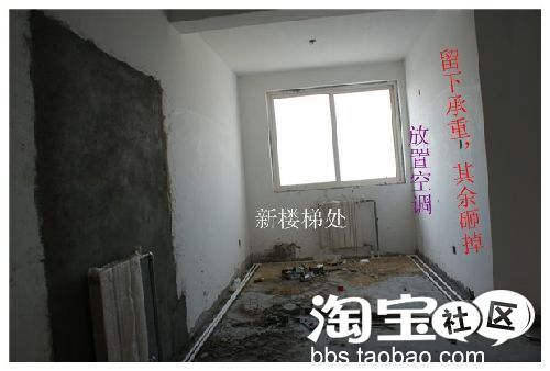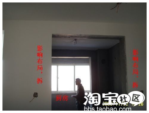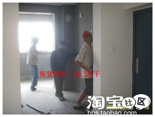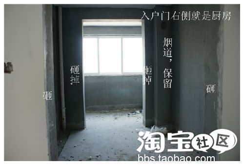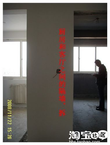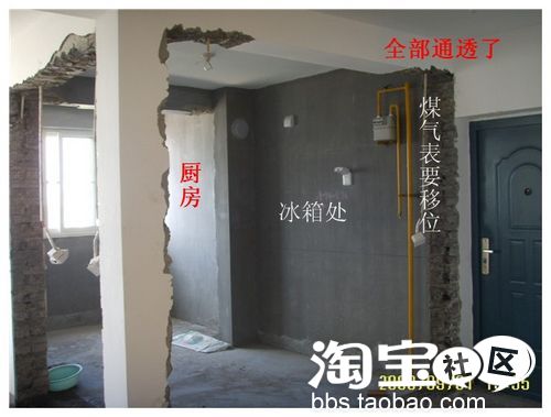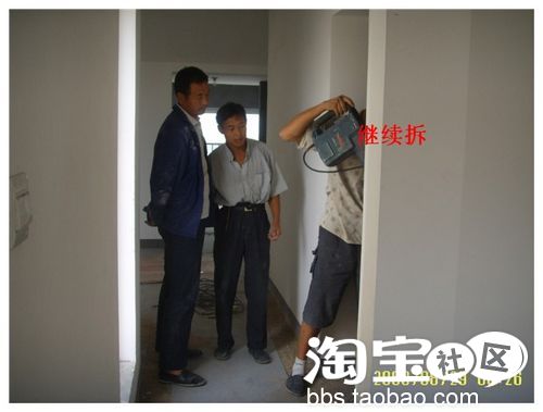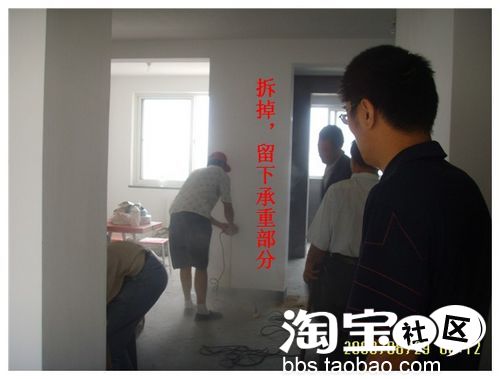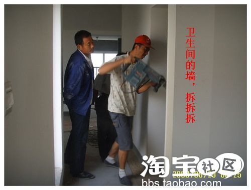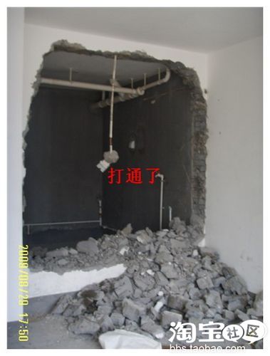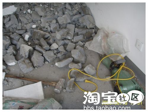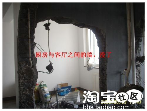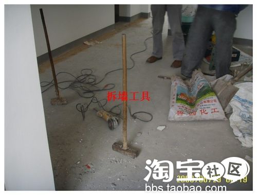 从青青岛社区的帖子上找到一个砸墙师傅的电话,打过去,很爽快,很快就来实地勘察了,和他交代一下那些墙想改动,他全部都是没有问题,瘦瘦的他,充满律动和活力,走起路来脚下像是有弹簧,让你永远不觉得他会累。OK!第二天一早开工。