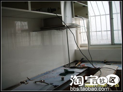 3.橱柜安装那天通知你定的油烟机和灶具一起来送货安装,安装油烟机那一侧的上柜的时候让他们两方配合好,把你的油烟机安到最最合适的位置。