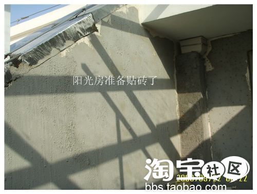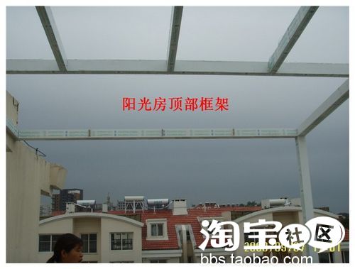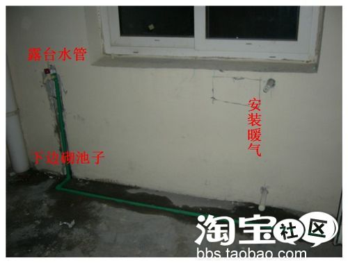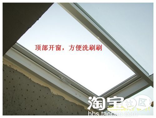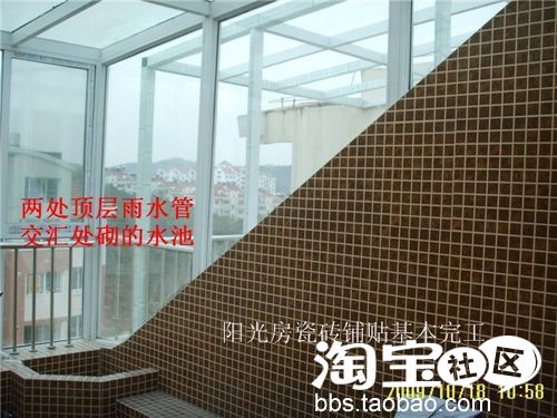 留了一个水槽,准备安上一个洗衣机专用龙头,可以有一个口接上长长的水管,然后从开出的天窗上去冲洗阳光房的顶。