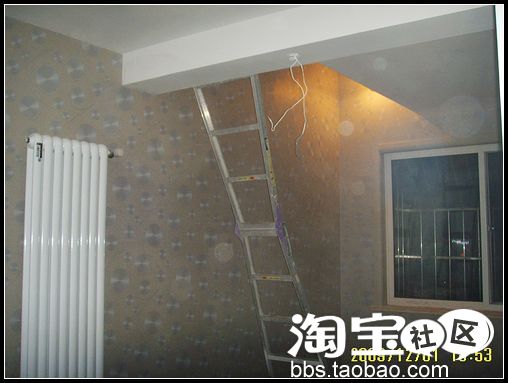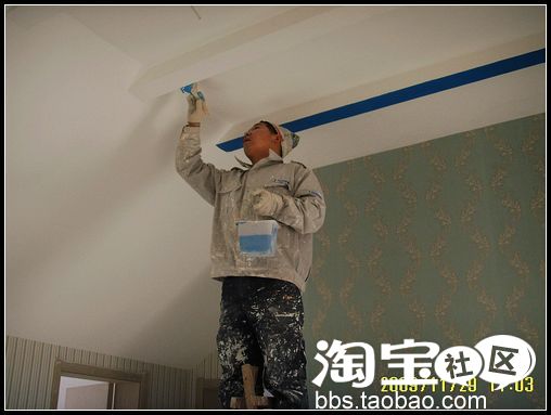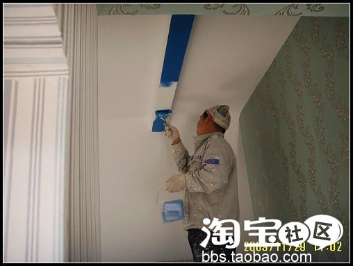 我家油工,正在刷我要的地中海蓝,阁楼上面的客厅贴的壁纸