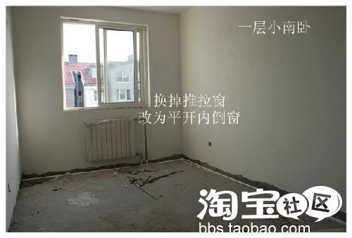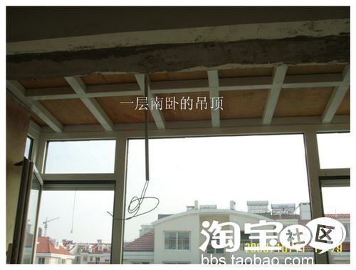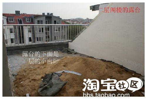 阁楼上边有一处露天阳台,准备封上,它的下边就是一层的小南卧。