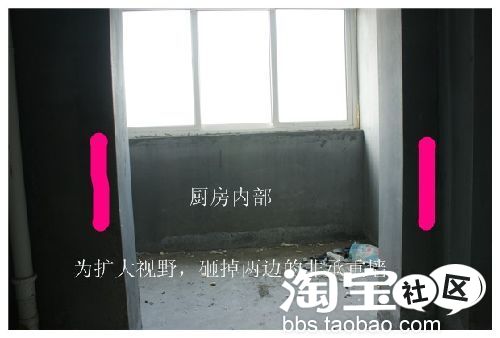 6层的原始风貌:一进门右手边就是厨房,视野狭窄,所以准备砸墙。