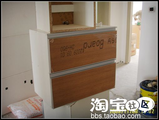 卫生间的台子和柜体也是在这一家做的,洗菜盆下边一定要用铝锡箔封边,防潮气。