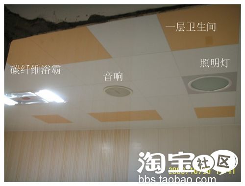 代安装我自购的碳纤维浴霸50(25*2),照明灯15(3*5),吸顶喇叭20(4*5),因为碳纤维浴霸、照明灯、吸顶喇叭都是网购,没有在吊顶这家选购,所以在安装的时候他们一直在说我的东西质量不好等等,不用管它,别往心里去,省钱才是硬道理,更何况我也是在网上对比了多家才出手的,也差不了的,相信自己。