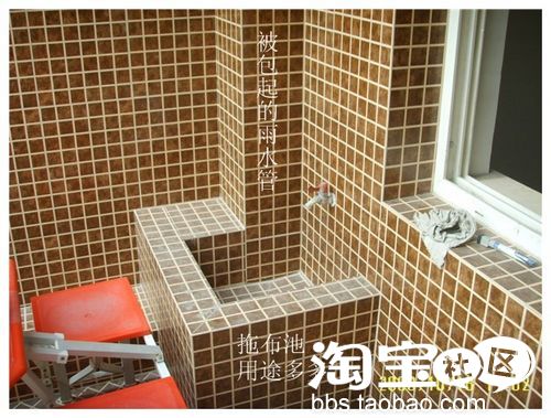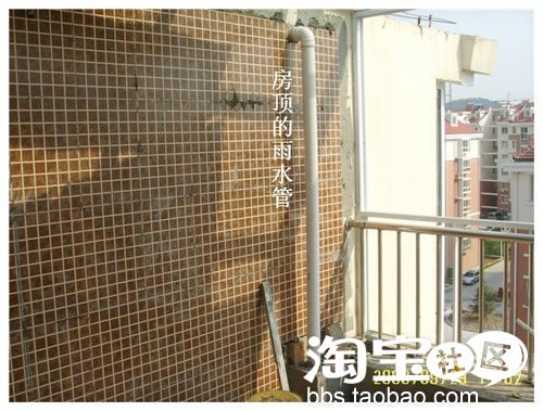 楼上的雨水管包住了,为了就着300的砖长度,所以就定为280mm,结果上面部分就露出来了,不大美观。