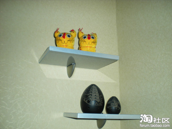 电视背景墙也没做,和整个客厅与主卧贴成了一样的金细线的淡暖黄壁纸,相当高档与温馨哦。这是我与老公一块走了许多家装修市场选的了,很棒!墙上面的小隔板就是点晶的装饰了,摆上去西安大雁塔时买回来的古代乐器,也是一小景哦,有种时尚的古典美吧。今年虎年,还有两个手工工艺品小老虎喔,也是香熏袋哦