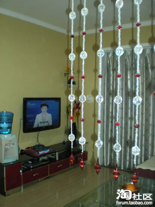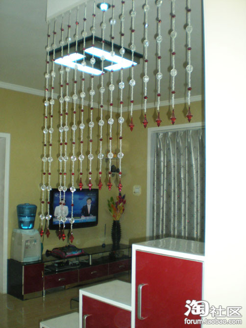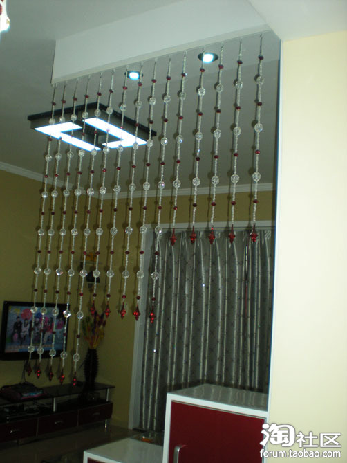 透过晶莹剔透的水晶帘印入眼帘的便是我们的客厅了,大家都来顶了哈,更多精采明天继续,大家喜欢就多加支持哦,欢迎提意见。如需要具体报价与产品设计稿,请与本掌柜联系,我们一定鼎立帮助。谢谢光临。