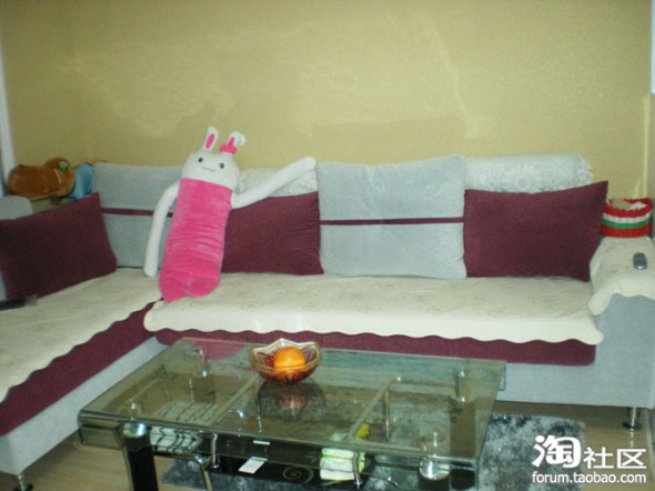 抱枕兔与大头狗狗是淘宝定的,是飘飘龙的,大家都认识的吧,装饰性很强哦,更人性化,温馨到家哦!!