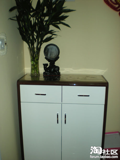 紧挨着是买来的组合鞋柜,依然是白配暗红色,大方得体哦。