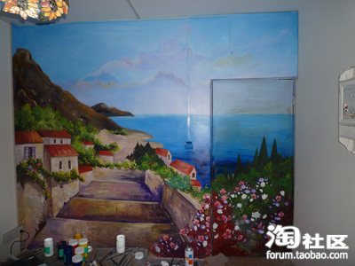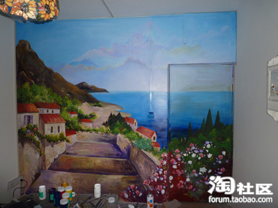 客厅的图画得很不错啊 ··墙画的真的好漂亮 才女