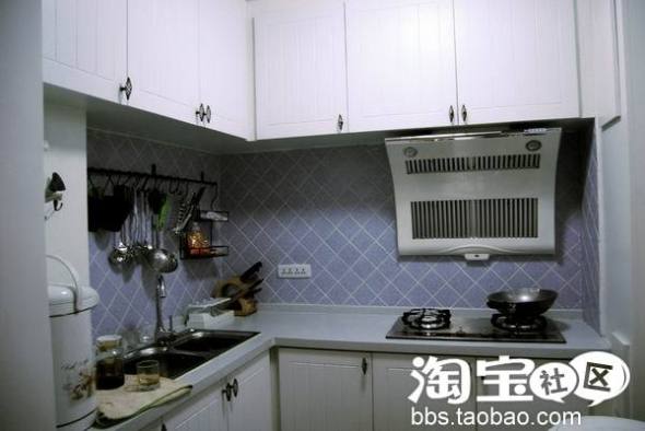 一进入户门的过道右手是个开放式的小厨房,一样是很迷你的,厨房没有门,连接过道的只有一个方拱。家里除了入户的防盗门以外,就只有卫生间一个门了。其余都是用门拱代替。这三个门拱的高度是不一样的