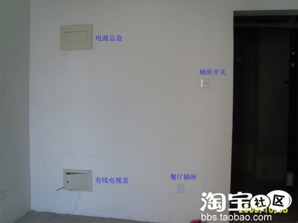 毛坯时的餐厅,短短的一段墙上却有四个东西,真是太热闹了。