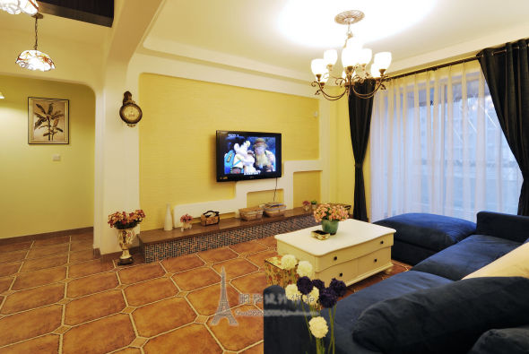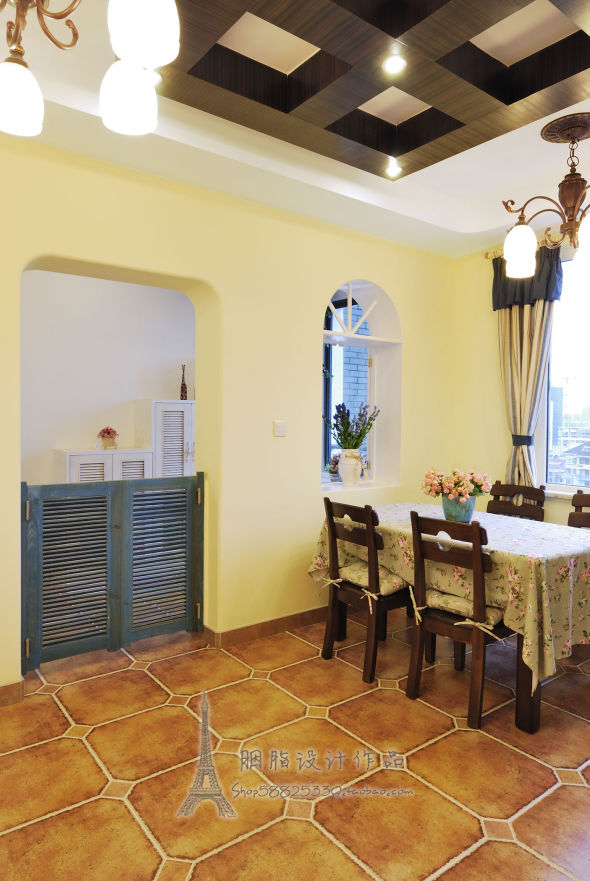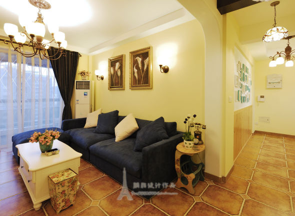 本案例是一套约135㎡的三居室,设计师充分考虑业主的家庭居住人口结构及居住空间的各方面配置,围绕“普罗旺斯”为主题而设计的地中海混搭风格,运用多种设计手法,比如:过道的圆拱门洞,假梁天花,天花的圆弧处理,入户花园的肌理漆纹理,复古的仿古砖,温馨的墙面颜色,带点乡村气息的墙纸,配以地中海风格的经典蓝色点缀,打造出业主想要的那种地中海风格且带有美国乡村气息的混搭味儿,整体混搭色彩鲜明,非常协调。
