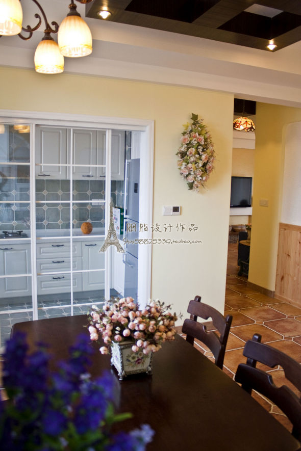 这是餐厅和厨房,因为咱做饭的油烟实在太大,没法做开放式的,就找了这种有点欧式的玻璃门代替了。从目前的情况来看,美观性和实用性都还不错。