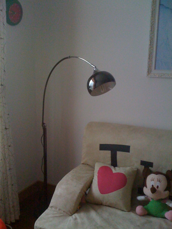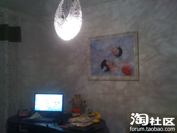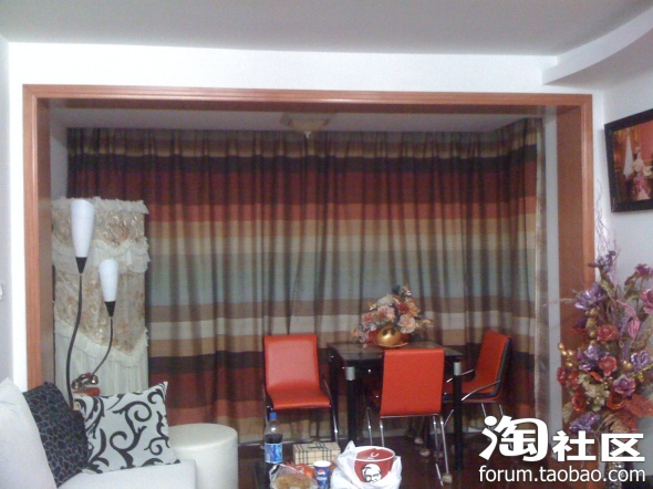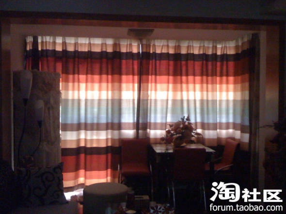 亲爱的,您家的窗帘很漂漂哦,还有最个性的灯,建议您家的墙面也化化妆,呵呵,那样整体效果更温馨哦!!!