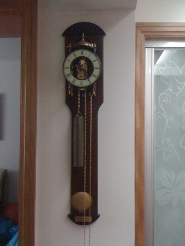 自己DIY的十字绣挂钟,取名为“在雨中”