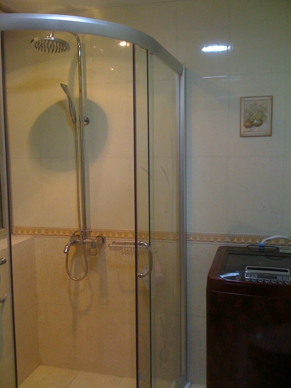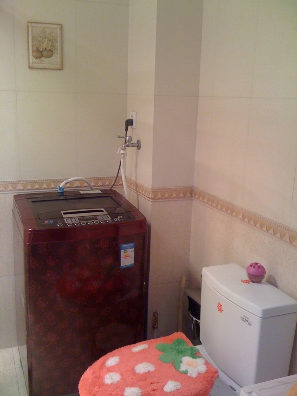 卫生间选用淋浴房,又是红色的LG洗衣机