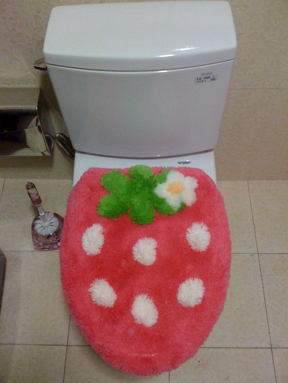 淘宝网上淘来的可爱草莓马桶套和海洋星星马桶刷
