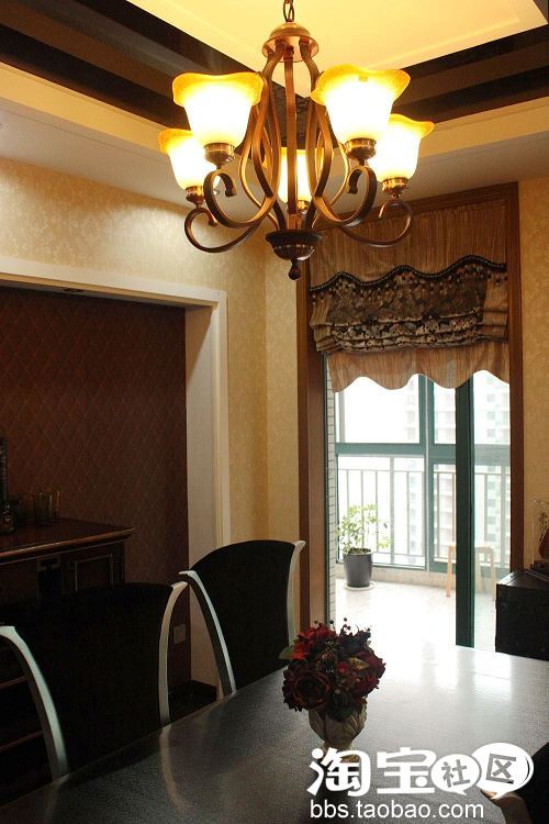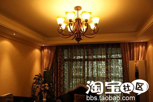 客厅的灯和餐厅的灯是同系列的,铁艺花苞形状的,一个是8头一个是5头,市场上买的,贵了一点点,淘宝上有便宜的,