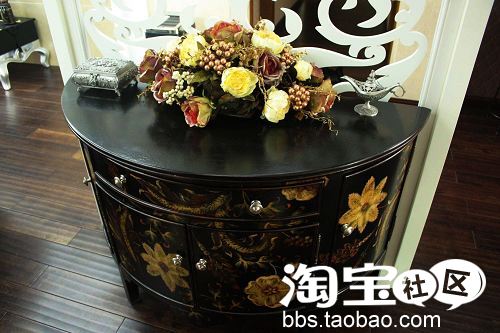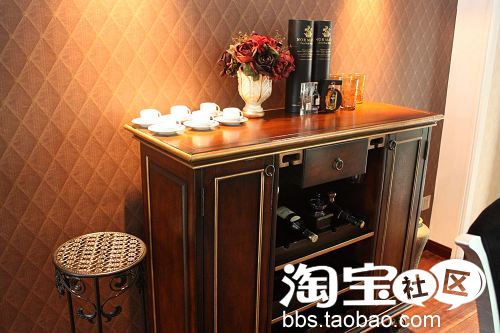 淘宝上根据我的尺寸定做的复古酒柜 上面可以掀开放东西 下面的圆形孔用来插红酒..