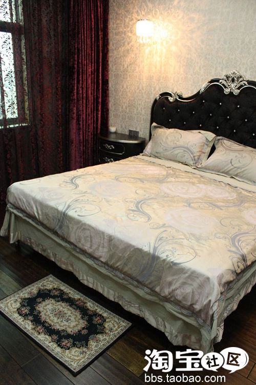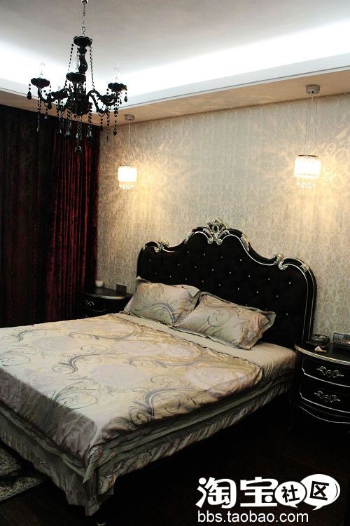 黑色水晶闷扣床跟两个床头柜都是淘宝的