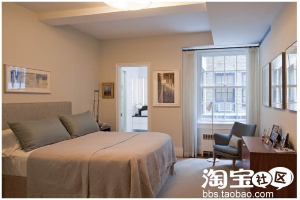 上下两套公寓合并以后,伯克把原来的厨房和餐厅合并起来改造成主卧。主卧只是简单地用安迪?沃霍尔的静电印刷技术印制的爱情诗和素描画加以装饰。