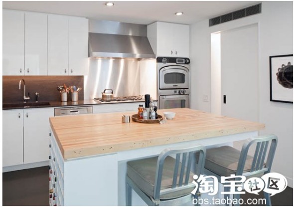 56岁的伯克说,我认为说整洁或者简约有碍于房间的舒适和温馨是一个错误的认识;没有了杂乱的视觉干扰,你可以放松身心。厨房的台面是由回收的保龄球馆地板做成的。