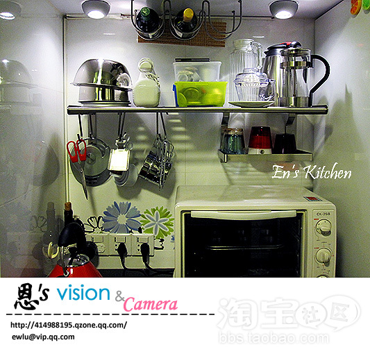 楼主是处女座么?嘻嘻,还有第一张橱柜上的鞋子是贴纸吗?在哪里有卖,萌啊~~一个男生的厨房也这么有腔调支持一下