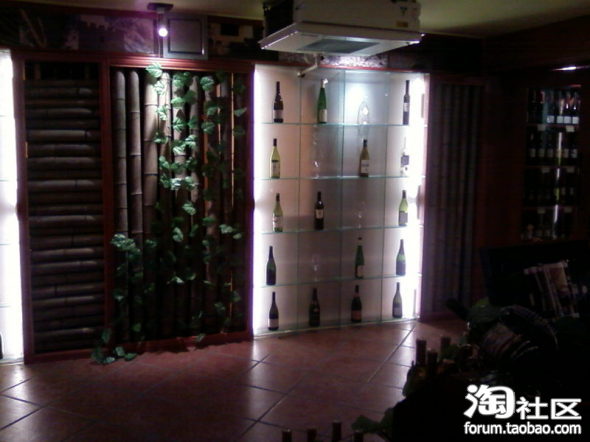 楼主用酒瓶装饰的墙壁很漂亮,I LIKE.