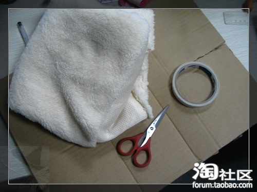 1.准备材料,很简单哦,废弃的纸板箱和毛绒布