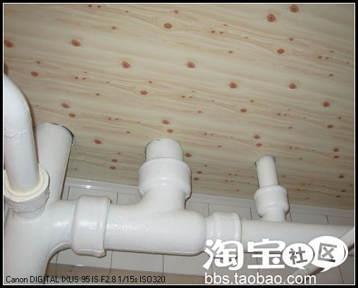 卫生间的吊顶,塑料板,才30多一平米,还包安装。卫生间的管子是铸铁管,以前刷的银粉,已经锈迹斑斑了,我瞧装修工人糊弄事儿,不仔细打磨原来的锈迹,自己动手刷的,厉害吧?