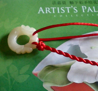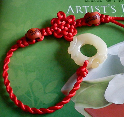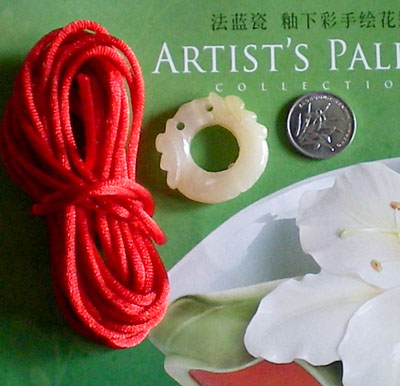 我们要准备2.5米的绳子四根,两个天然黄玉如意圈圈,12个辟邪珠珠