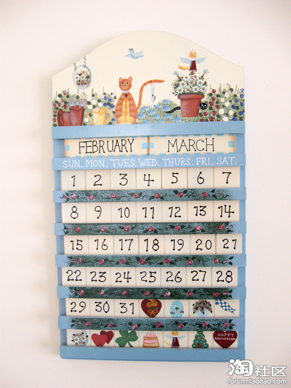 客厅的手绘万年历。用处是不大的,挂上还是蛮好看地。