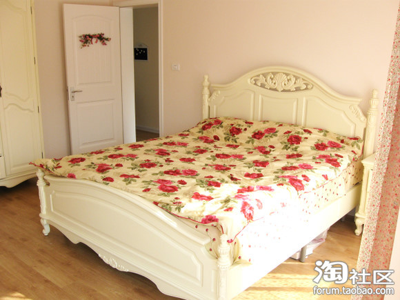 乳胶漆是水粉色的~~床是实体店购。